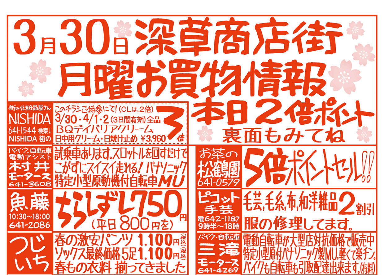 3月30日月曜お買物情報